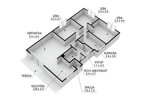 Prevedenie holodom (zahŕňa hrubú stavbu a naviac) okná, vnútorné vapenné omietky, vypínače a zásuvky, sádrokartónové podhľady, rozvody vody, elektriny, fasáda na hotovo vo farbe podľa projektu.